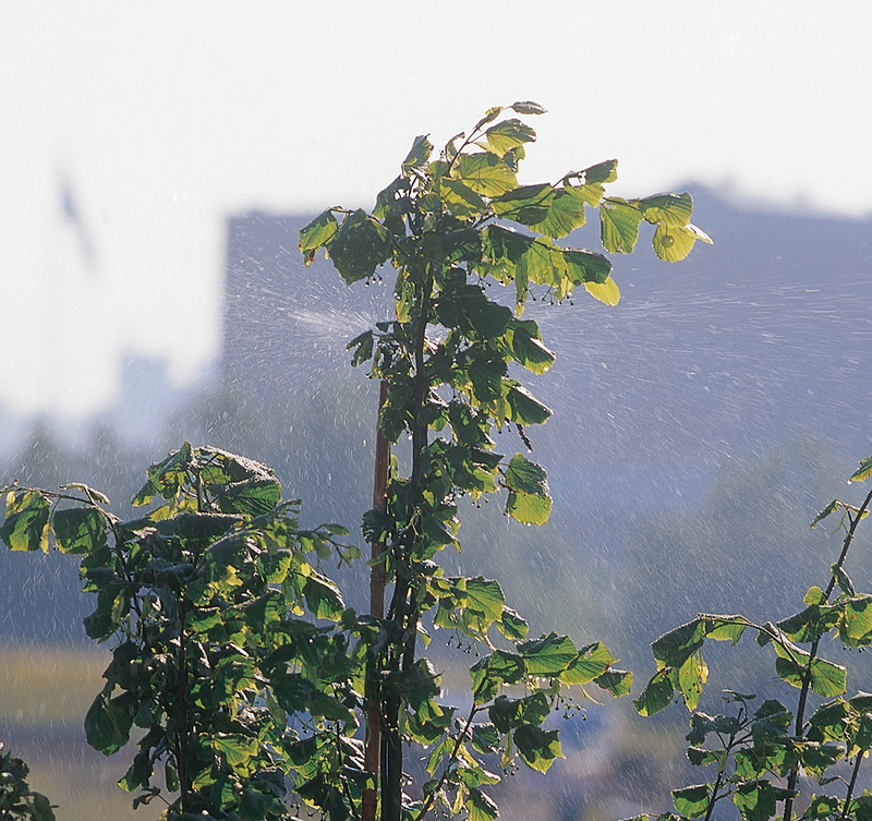 Dysornas bevattning fuktar bladverket på trädet och skyddar det mot torkstress som annars är vanligt på nyplanterade träd. Dessutom dricker träden även via bladen och dysorna är utmärkta att använda vid bladgödsling. Droppslangen, nedgrävd i jorden, förser träden med en långsam och exakt bevattning utan avdunstning. Vid droppbevattning sprids vattnet runt växten så att jorden inte packas och ger rötterna syrebrist.